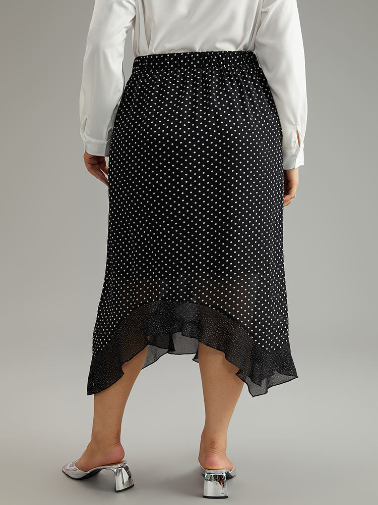 Polka Dot Ruffles Elastic Waist Mesh Patchwork Skirt