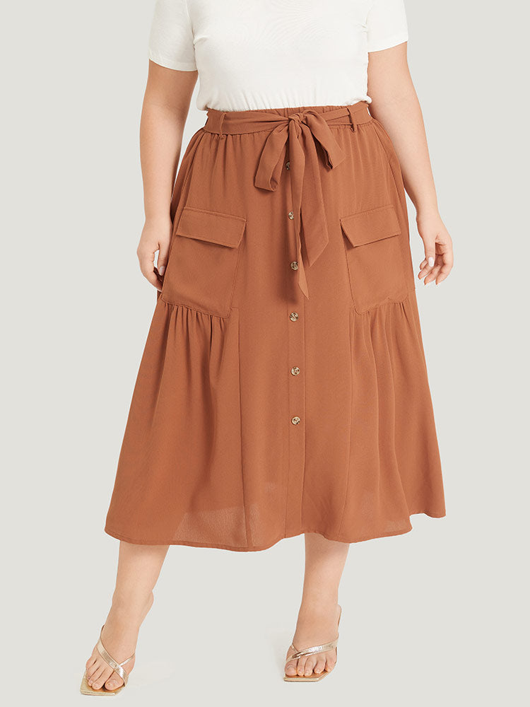 Contrast Button Detail Flap Pocket Gathered Skirt