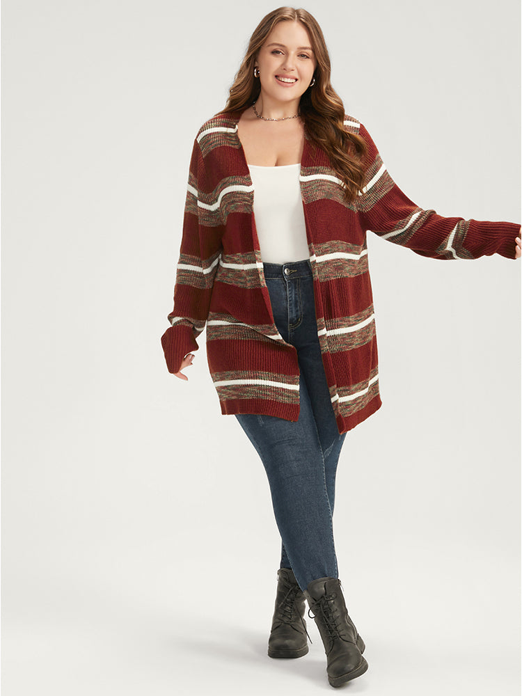 Striped Contrast Pointelle Knit Open Front Loose Cardigan