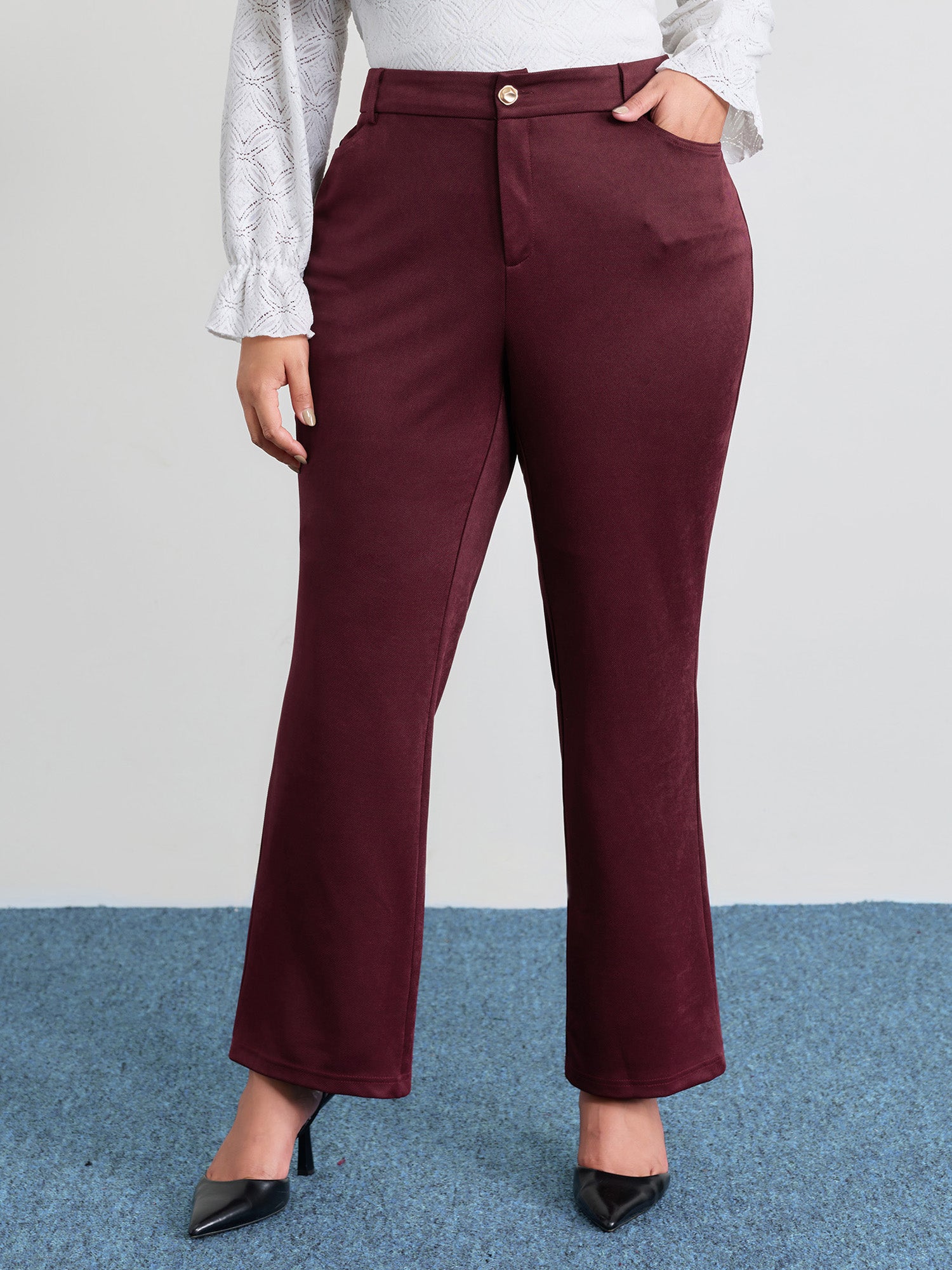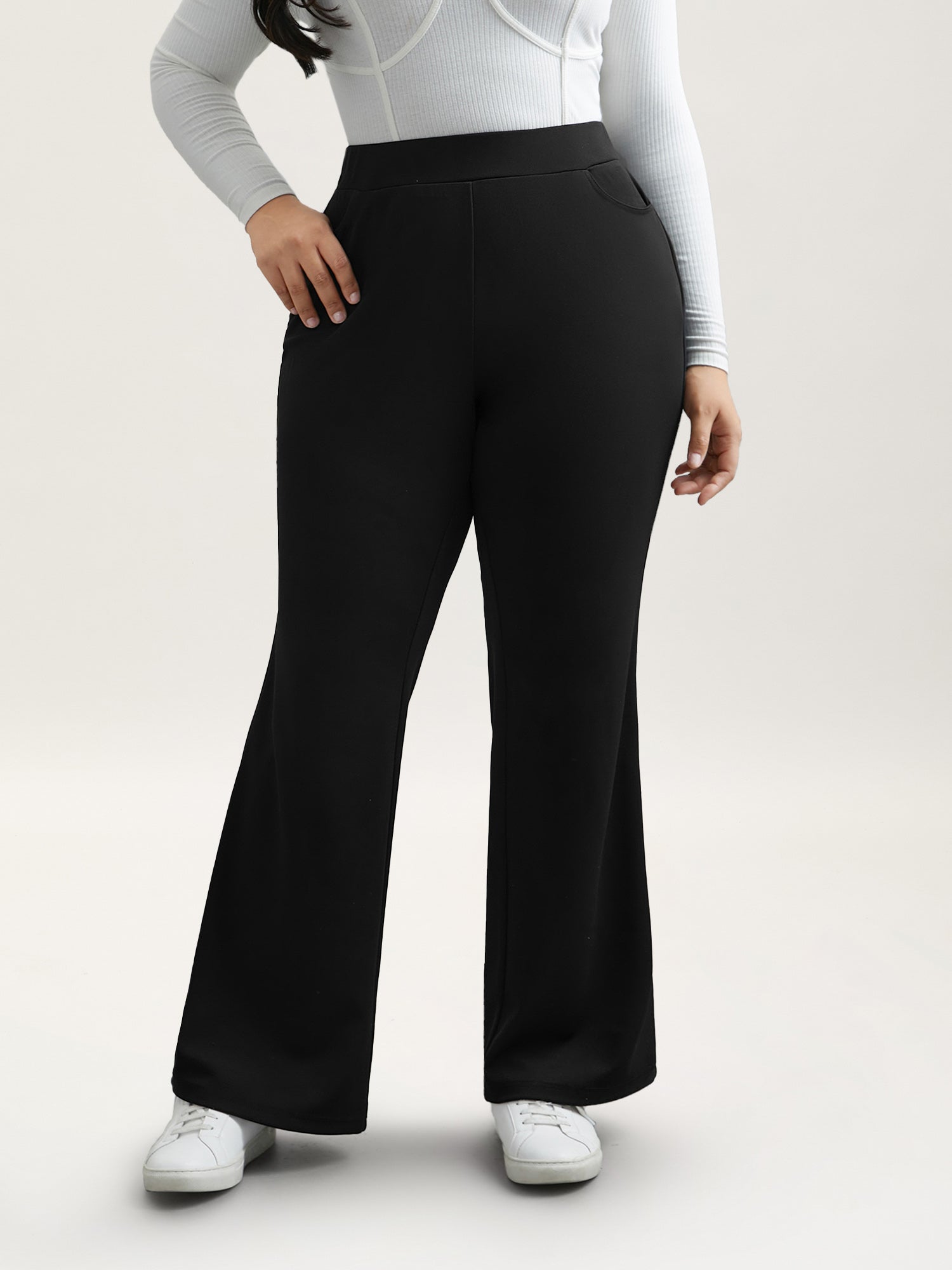 Static-Free Plain High Rise Elastic Waist Pants