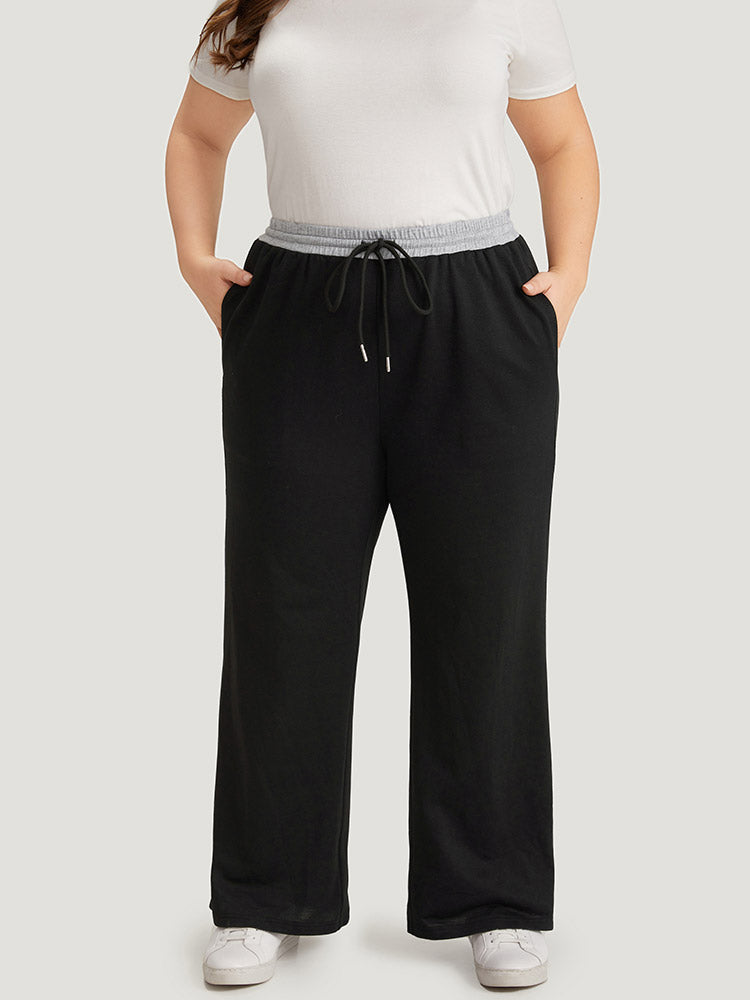 Contrast Patchwork Drawstring Straight Leg Pants