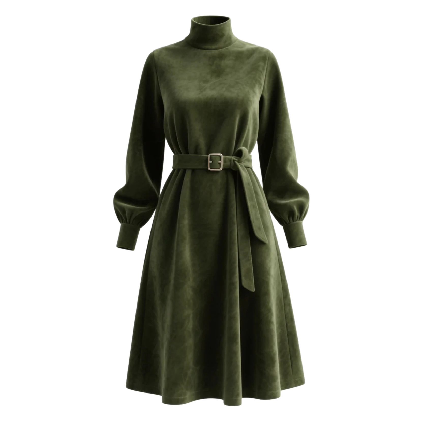 Outdoor Retro Western Style Women's Suede Long Sleeve Mid-Neck Dress