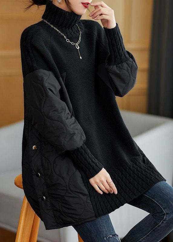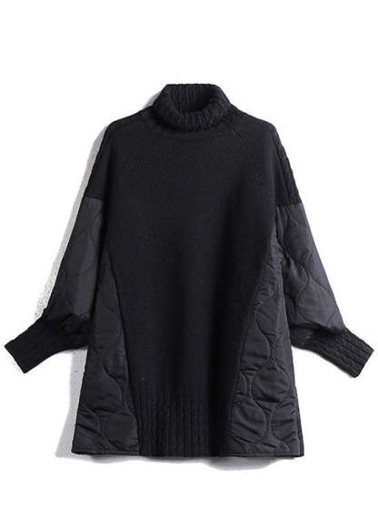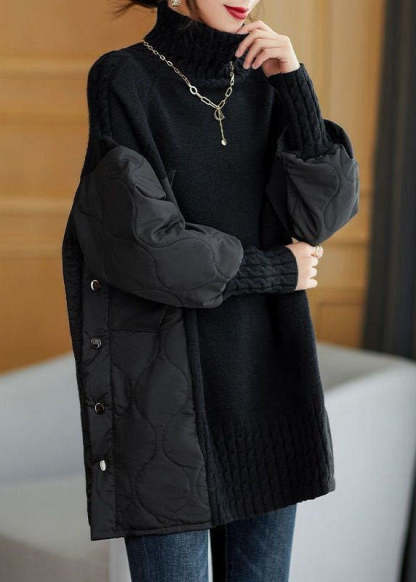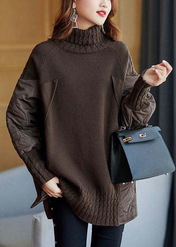 Simple Chocolate Turtleneck Patchwork Loose Fall Knit sweaters