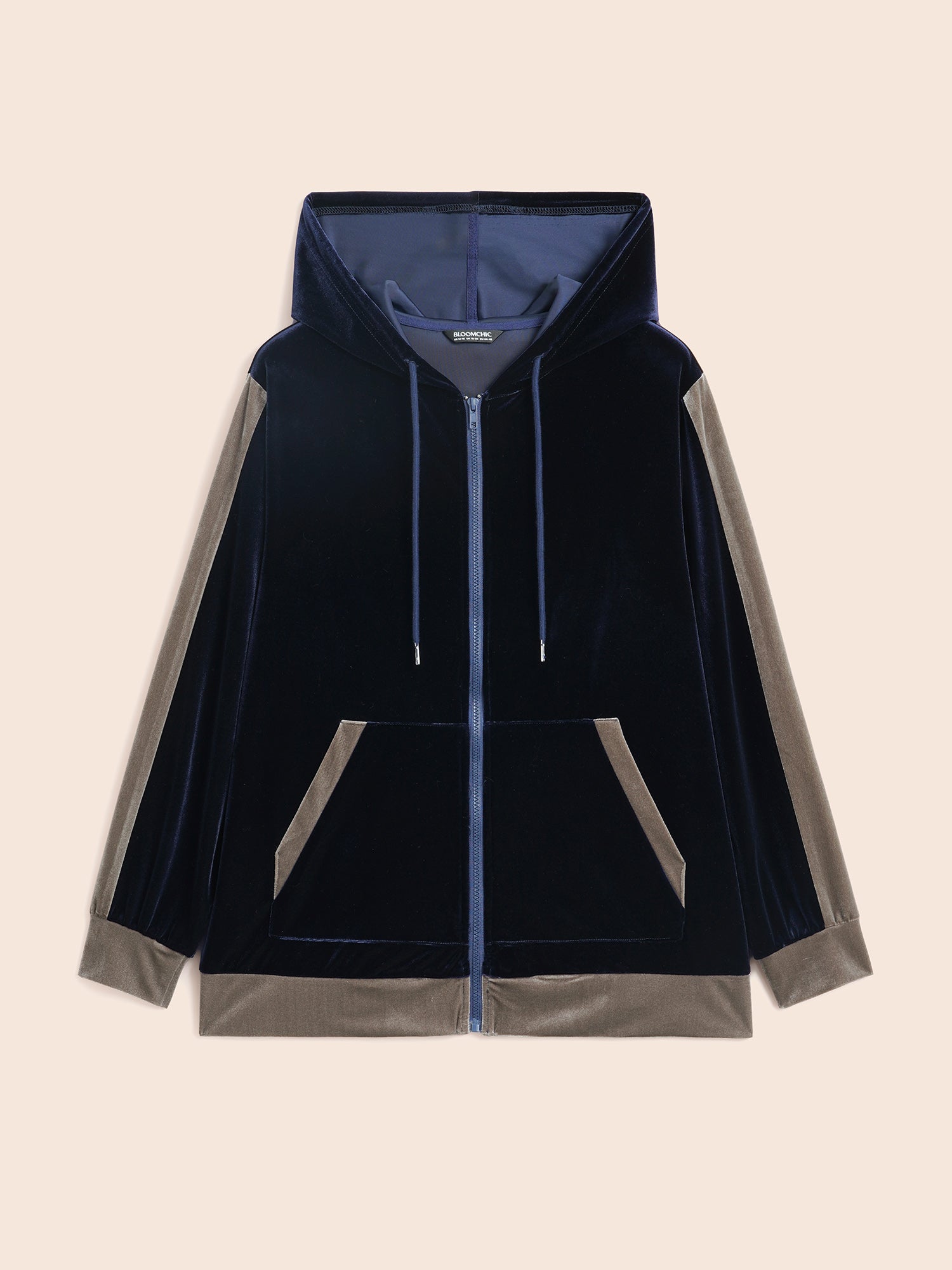 Velvet Contrast Patchwork Hooded Sweatshirt