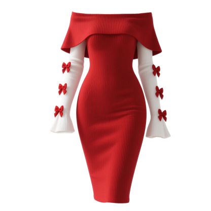 Women's Color-blocked Fitted Off-shoulder Shawl Dress With Bow Embellishment, Sexy Bodycon Dress