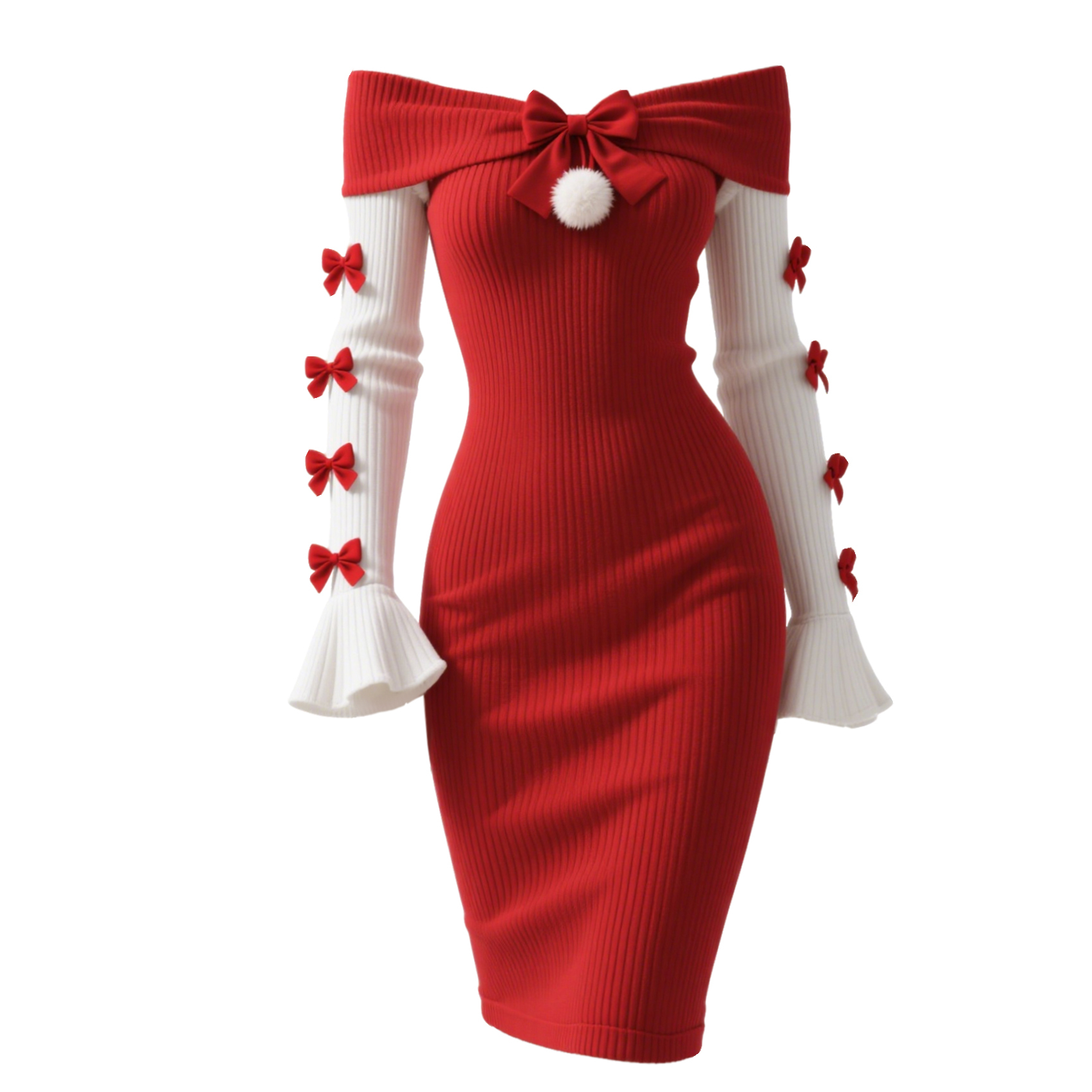 Women's Off-shoulder Color-blocked Fitted Dress With Bow Embellishment, Sexy Bodycon Dress